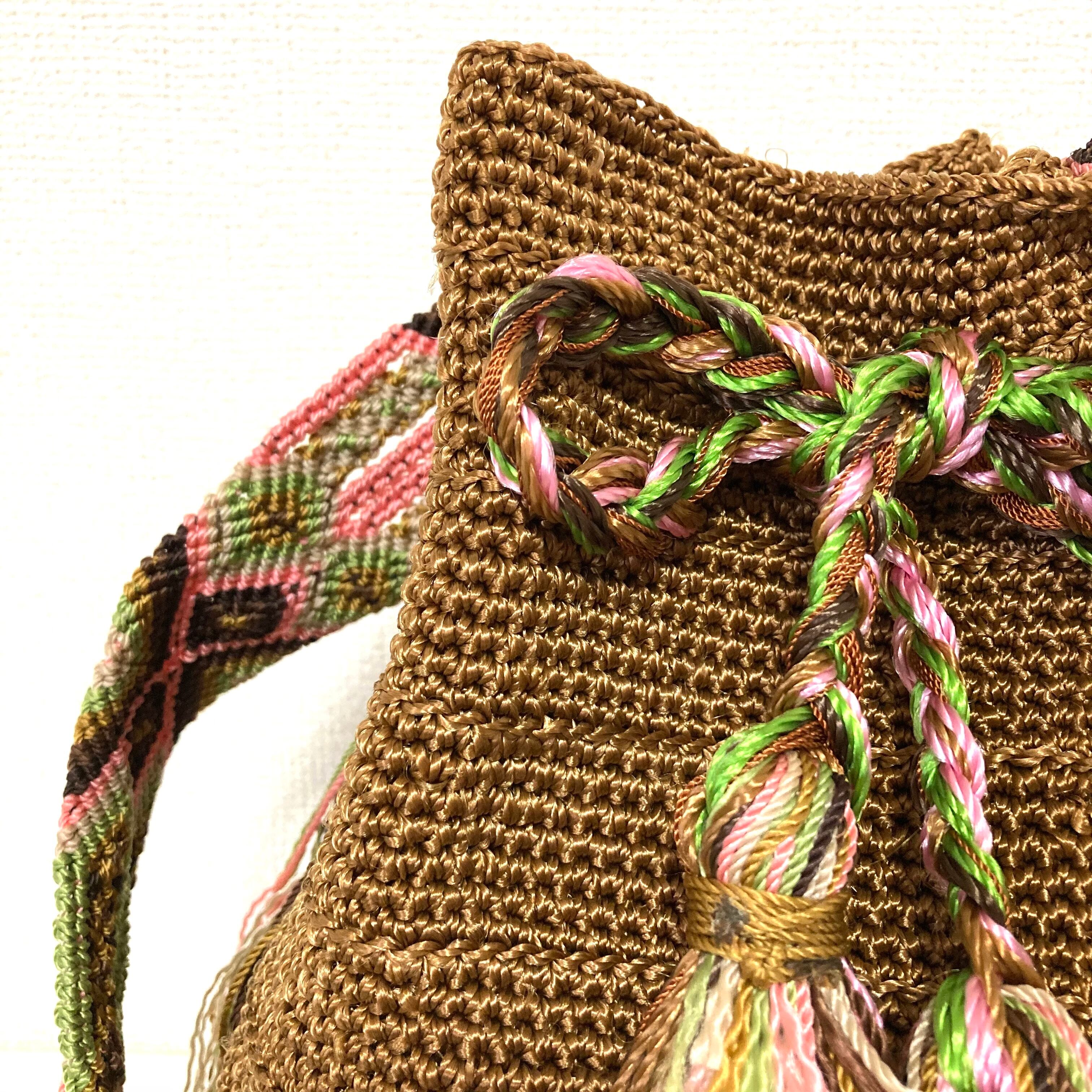 カラフルなストラップや口を絞る三つ編みされた紐など