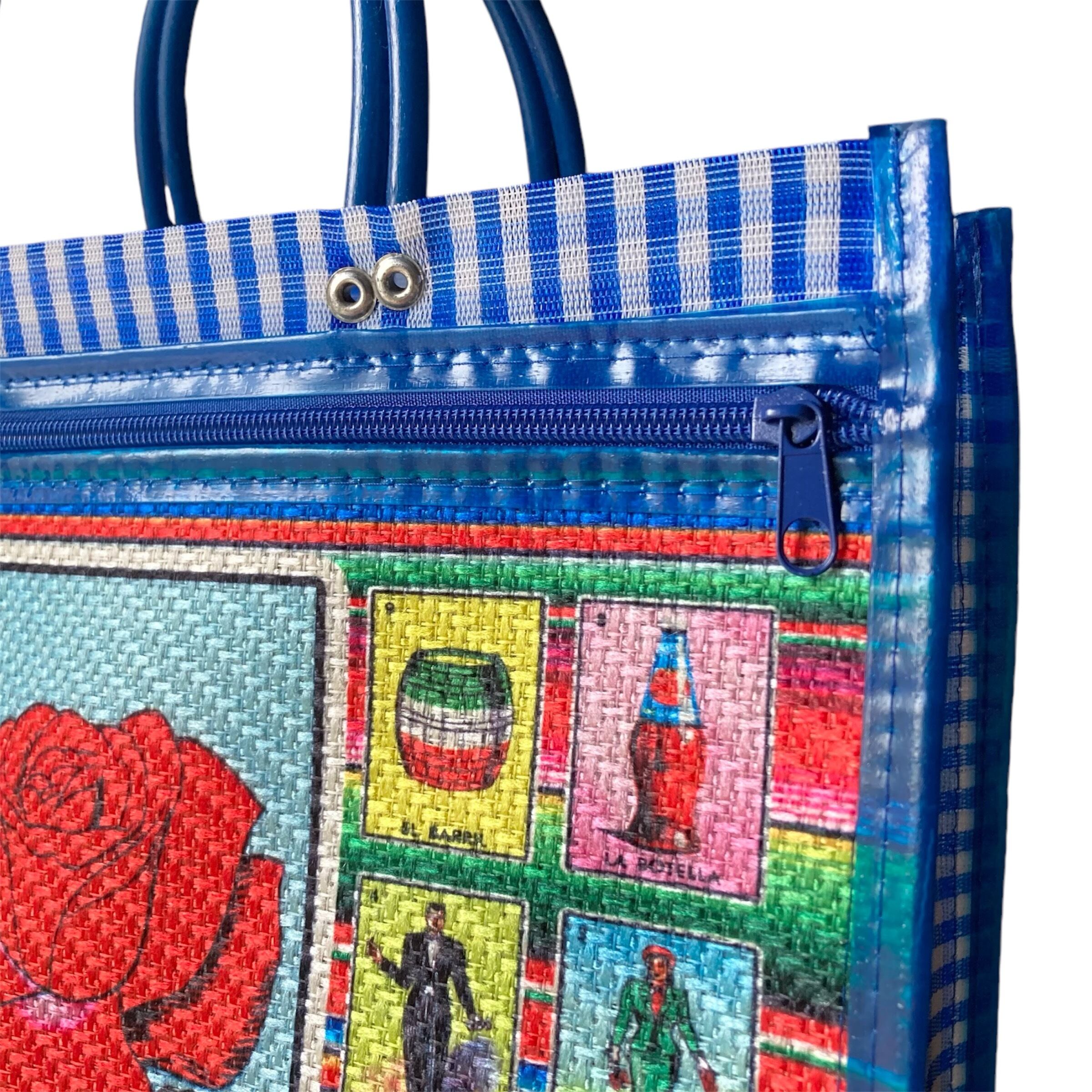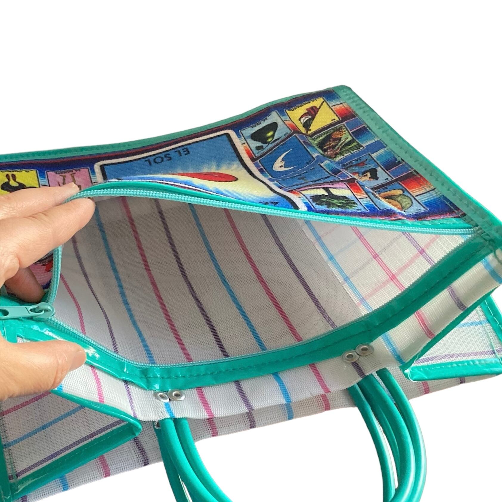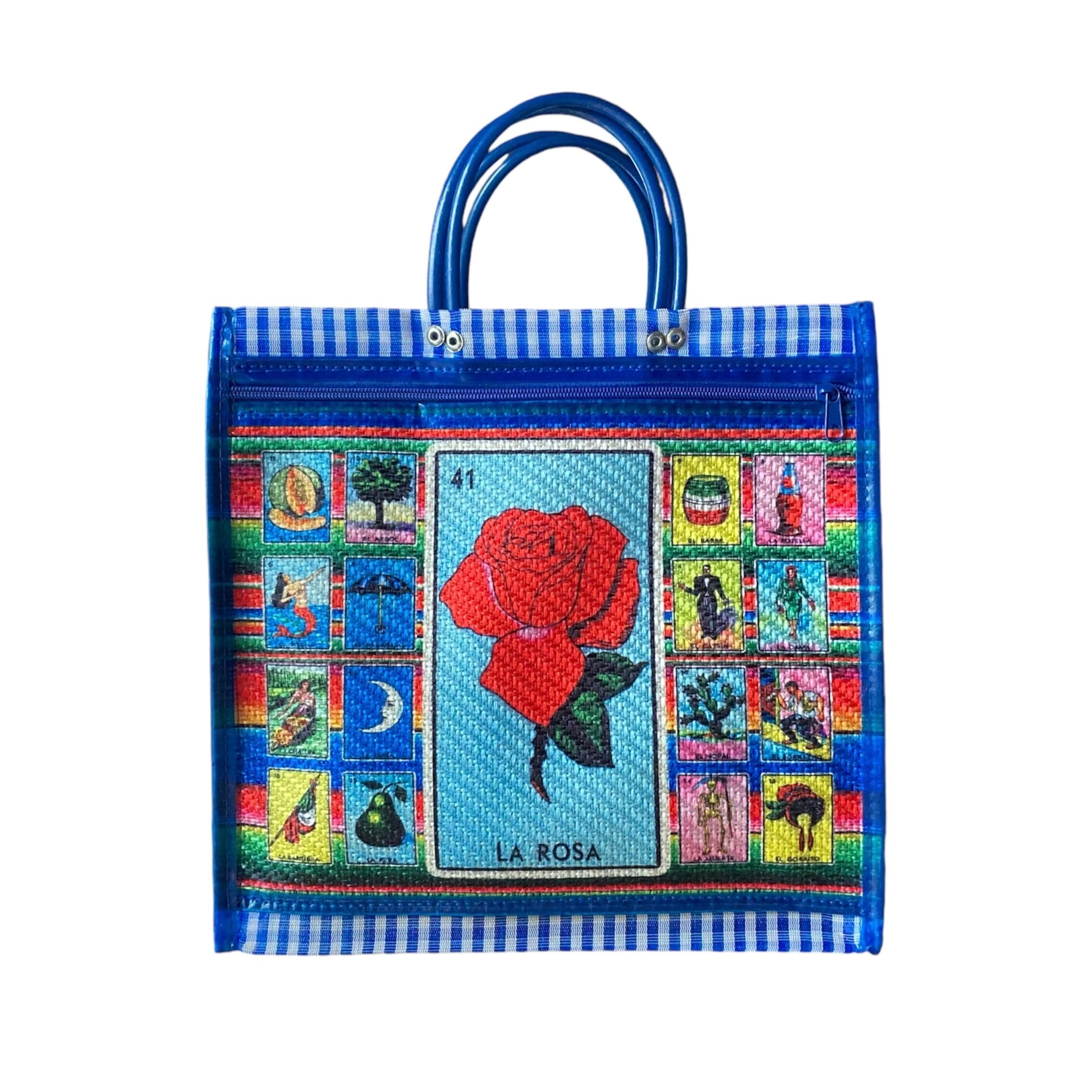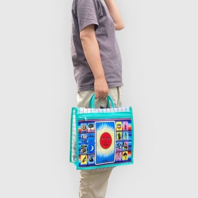 前面の大きなポケットにはメキシコのカードゲーム”ロテリア”がプリントされています。使わない時はそのままお部屋に置いて、飾る収納小物入れにもなりますよ♪